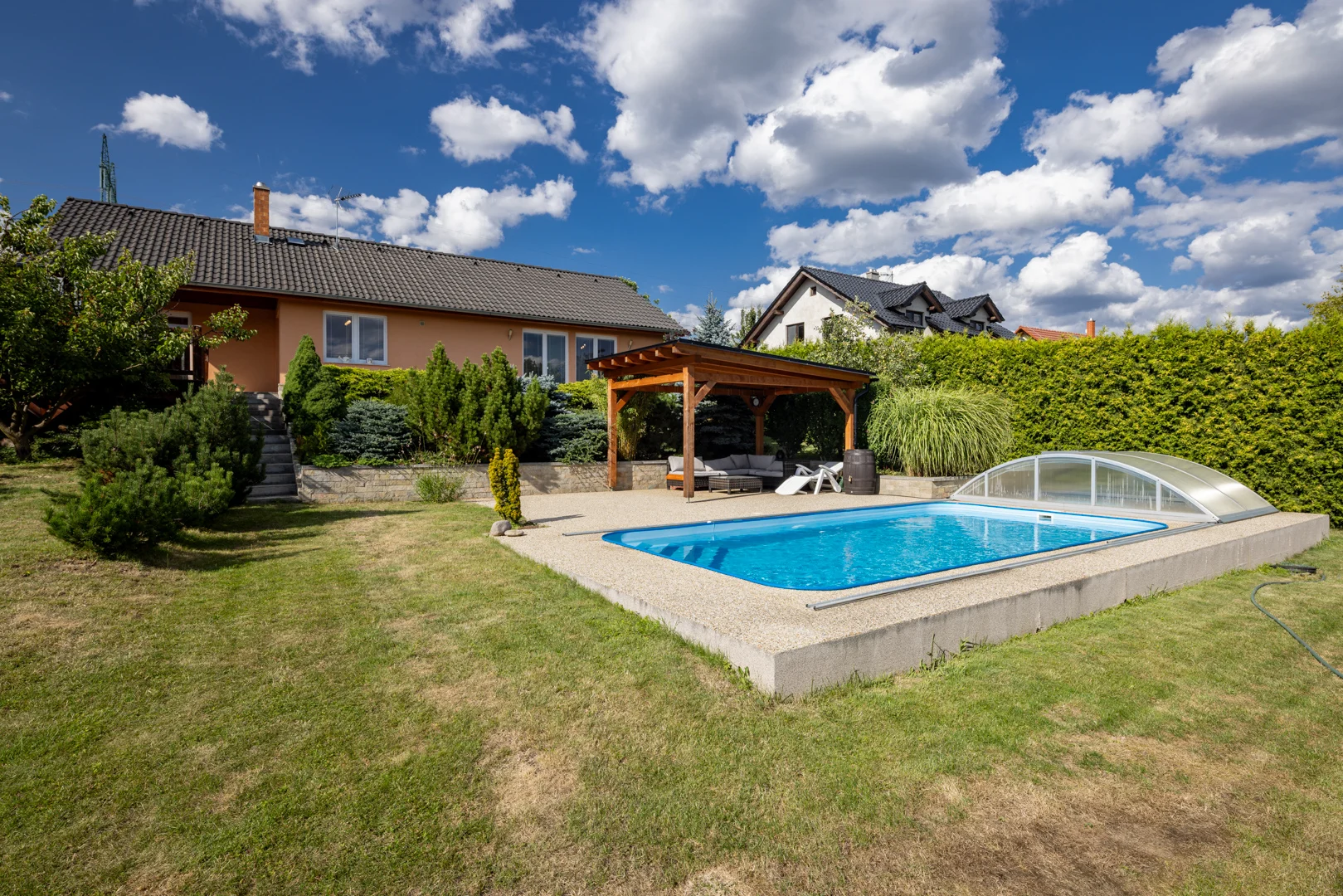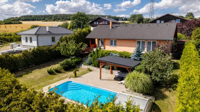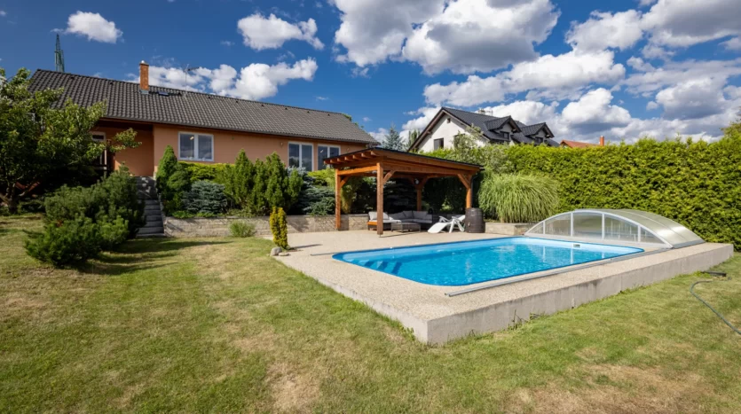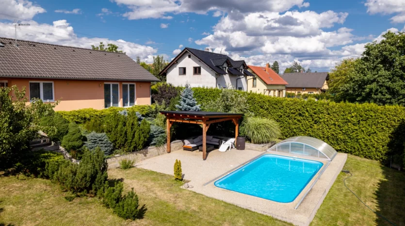 Štěchovický poklad – moderní bungalov 4+kk s bazénem, pergolou a krásnou zahradou v klidné přírodní lokalitě u Prahy